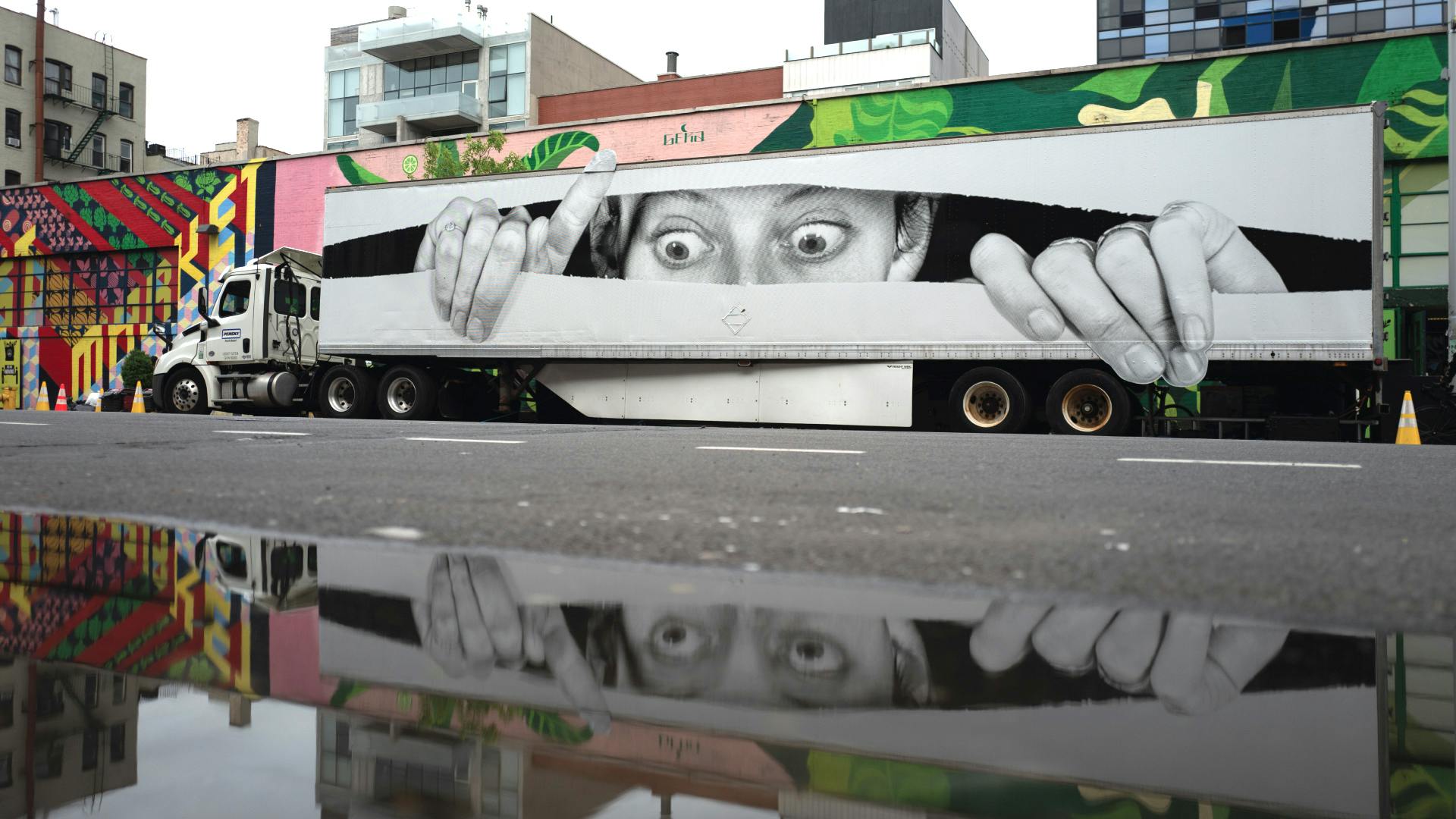 "As JR's projects have evolved in complexity and reach, they’ve become a shorthand for the kind of citizen-of-the-world pluralism and inextinguishable optimism that can be hard to separate from naïveté. 'Chronicles' includes JR’s most recent project, “The Chronicles of New York City,” a large-format mural featuring 1,128 people, whom JR and his team photographed and interviewed by way of a 53-foot-long trailer truck studio that trawled the five boroughs last summer." - The New York Times